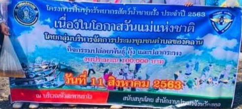 วันที่ 11 สิงหาคม 2563 เข้าร่วมโครงการฟื้นฟูทรัพยากรสัตว์น้ำชายฝั่ง ประจำปี 2563 เนื่องในวันแม่แห่งชาติ