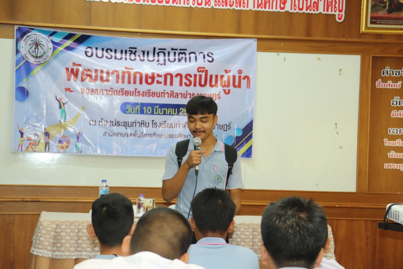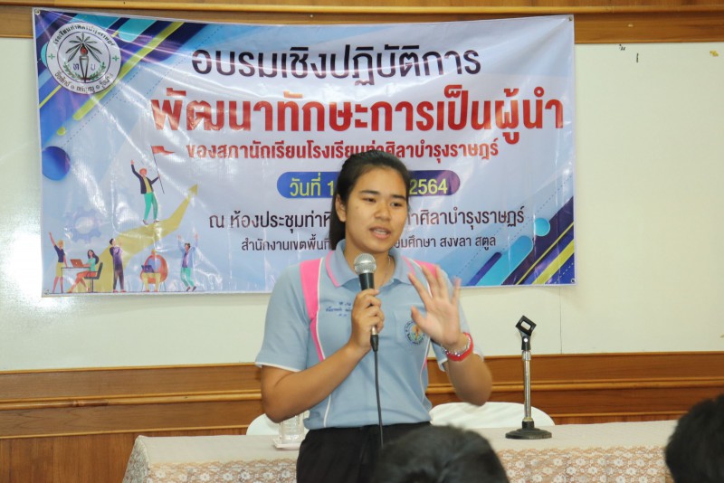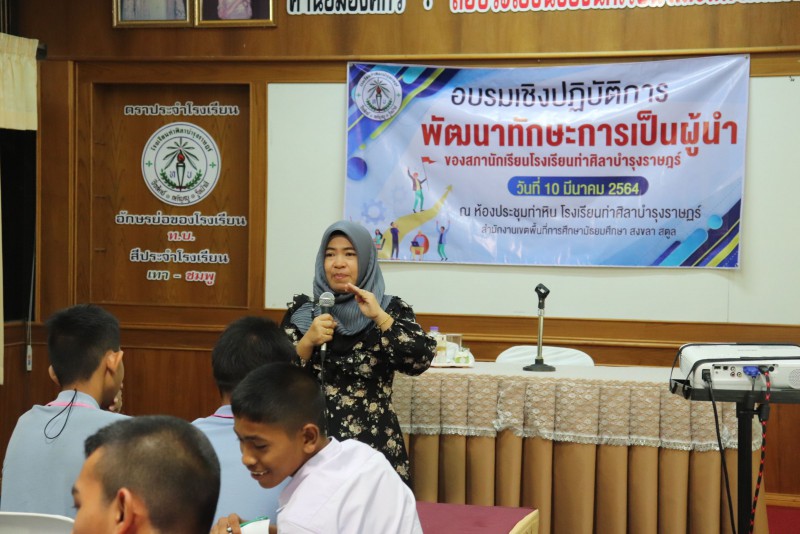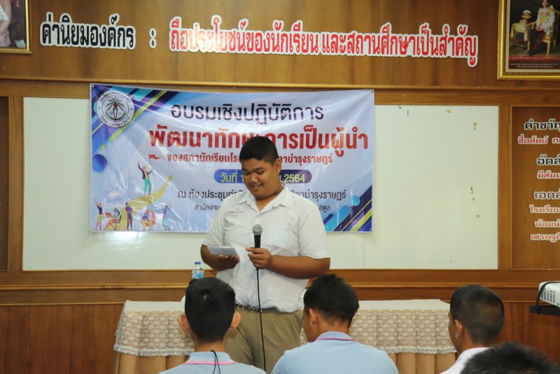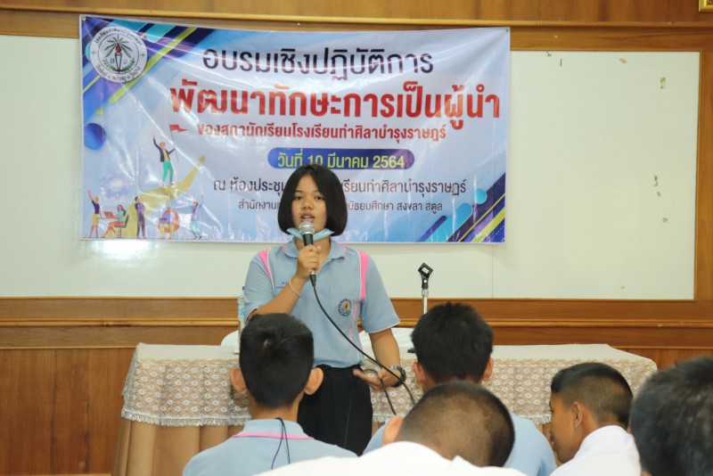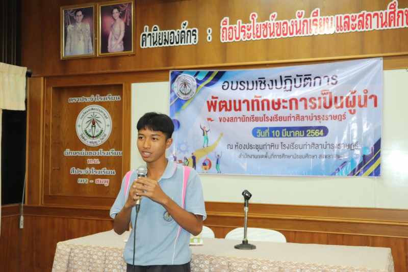วันที่ 10 มีนาคม 2564 จัดกิจกรรมอบรมเชิงปฏิบัติการพัฒนาทักษะความเป็นผู้นำของสภานักเรียน