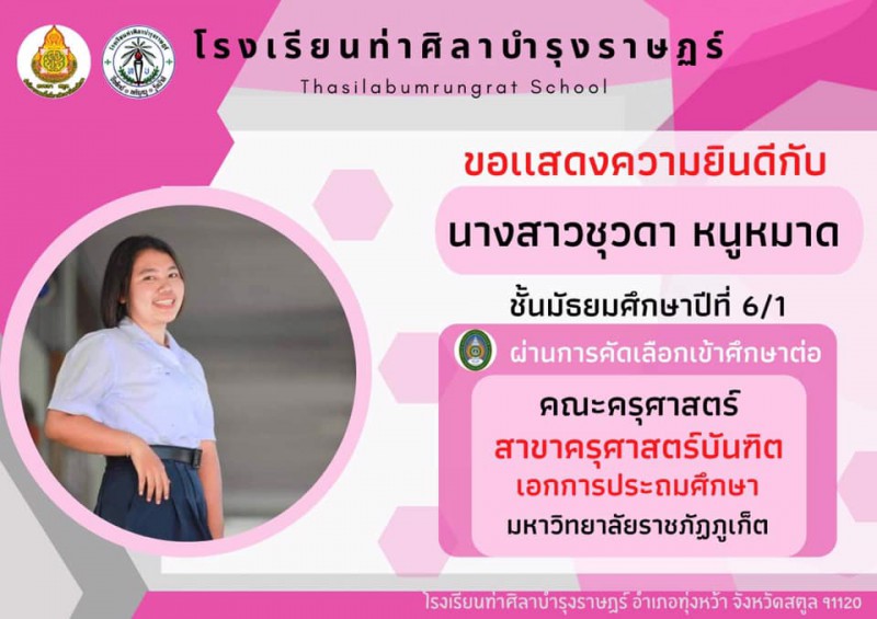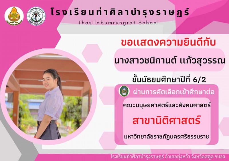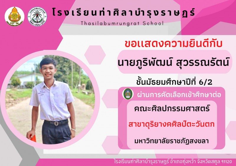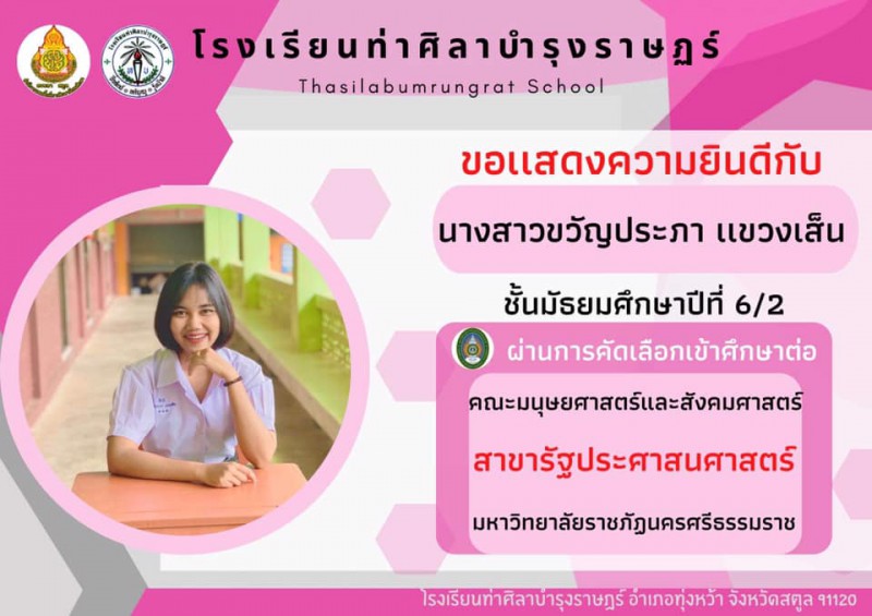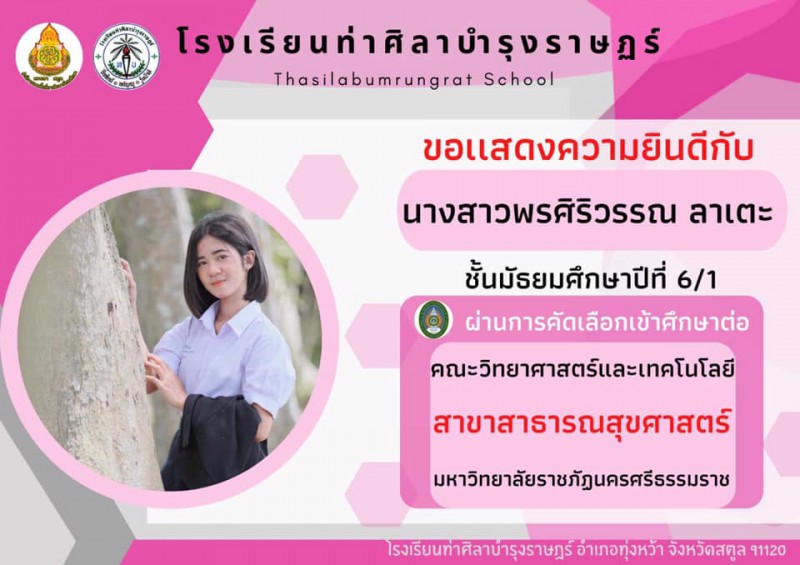 โรงเรียนท่าศิลาบำรุงราษฎร์ ขอแสดงความยินดี กับนักเรียนระดับชั้นมัธยมศึกษาปีที่ 6 ปีการศึกษา 2564 ที่ผ่านคัดเลือกเข้าศึกษาต่อในระดับอุดมศึกษา