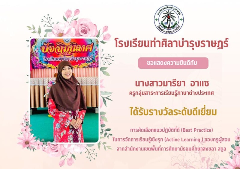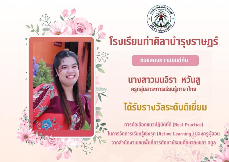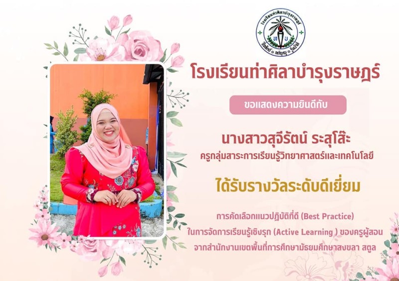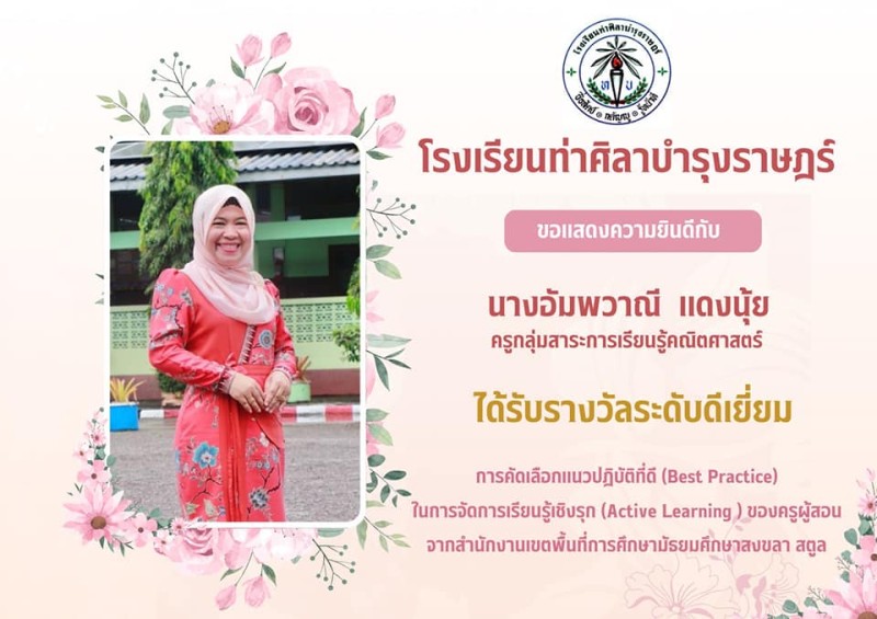ครูผู้สอนได้รับรางวัลแนวปฏิบัติที่ดี (ฺBest practice)