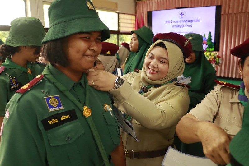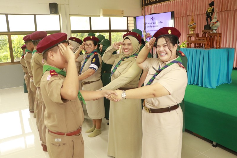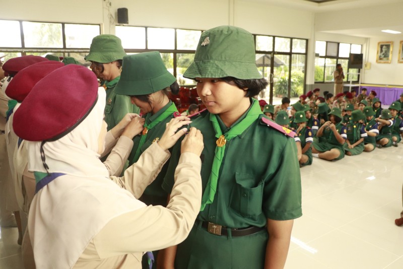วันที่ 21 พฤศจิกายน 2567 จัดพิธีประดับปลอกแขน ลูกเลือ กกต. เพื่อพัฒนาประชาธิปไตย แก่ลูกเลือ เนตรนารีสามัญรุ่นใหญ่