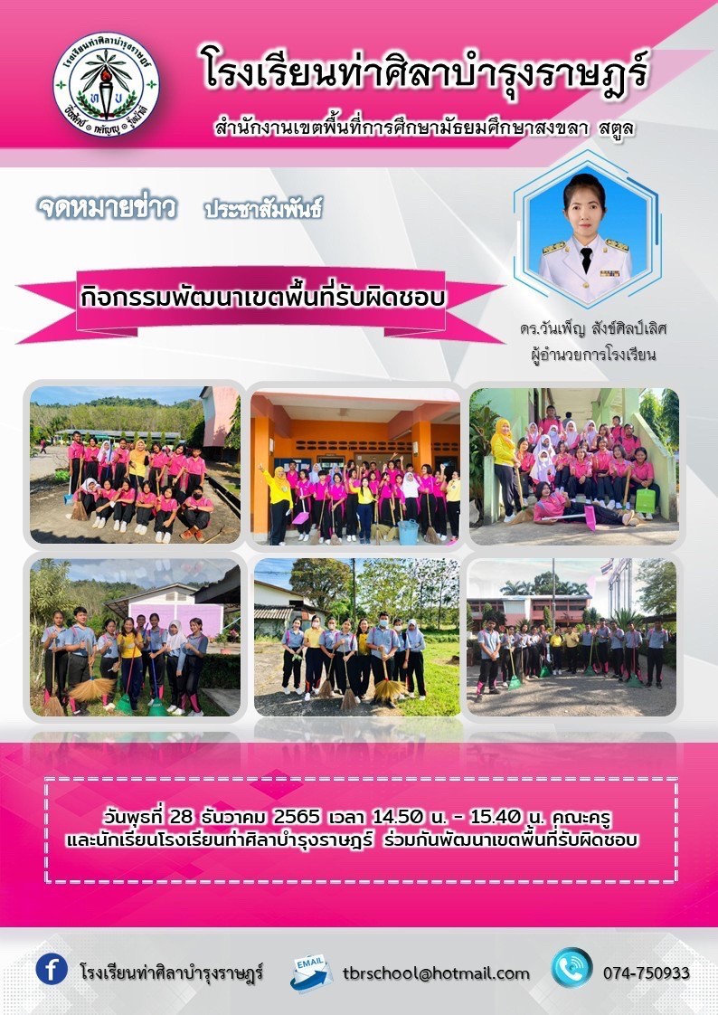 วันที่ 28 ธันวาคม 2565 จัดกิจกรรมพัฒนาเขตพื้นที่รับผิดชอบของนักเรียน