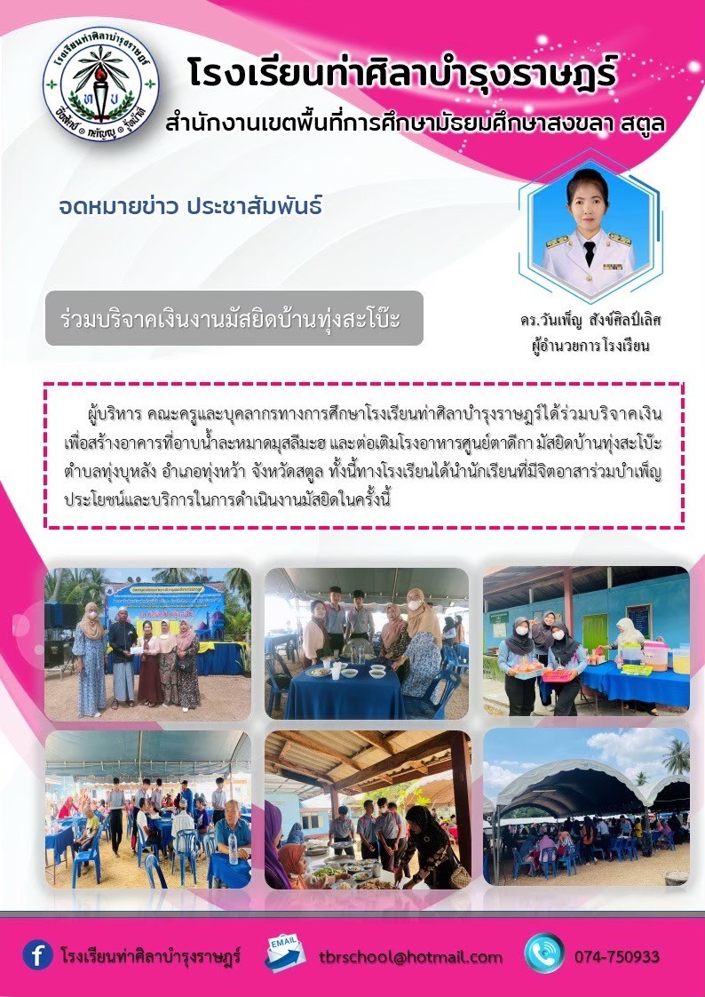ร่วมบริจาคเงิน และจิตอาสาบำเพ็ญประโชน์ ช่วบงานการกุศลมัสยิดทุ่งสะโบ๊ะ