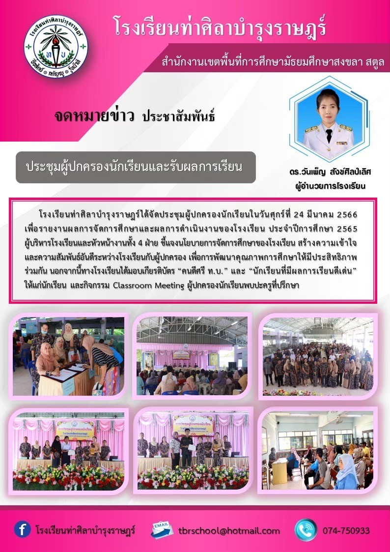 วันที่ 24 มีนาคม 2566 ประชุมผู้ปกครองนักเรียนและรับผลการเรียน