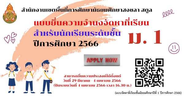 ประกาศแจ้งความจำนง นักเรียนชั้น ม.1 ที่ยังไม่มีที่เรียน ผ่านลิงคฺและ QR CODE