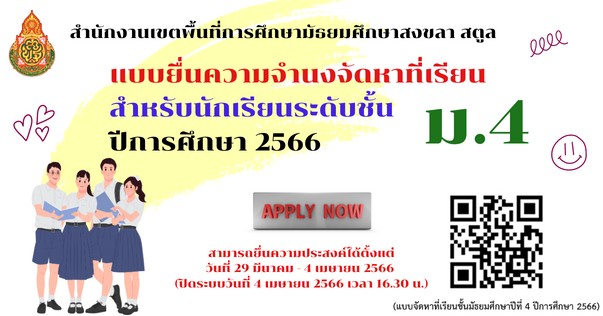 ประกาศแจ้งความจำนง นักเรียนชั้น ม.4 ที่ยังไม่มีที่เรียน ผ่านลิงค์และ QR CODE