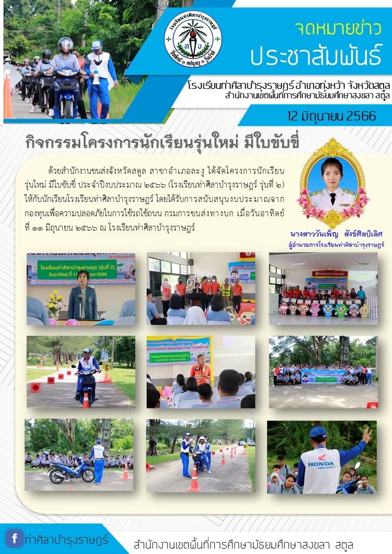 วันที่ 11 มิถุนายน 2566 จัดกิจกรรมอบรมโครงการนักเรียนรุ่่นใหม่มีใบขับขี่