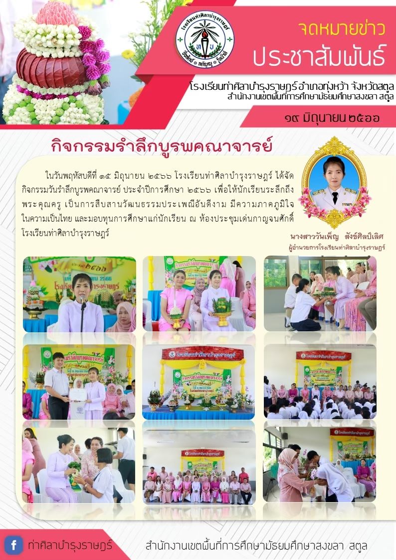 วันที่ 15 มิถุนายน 2566 จัดกิจกรรมรำลึกบูรพคณาจารย์ ประจำปีการศึกษา 2566