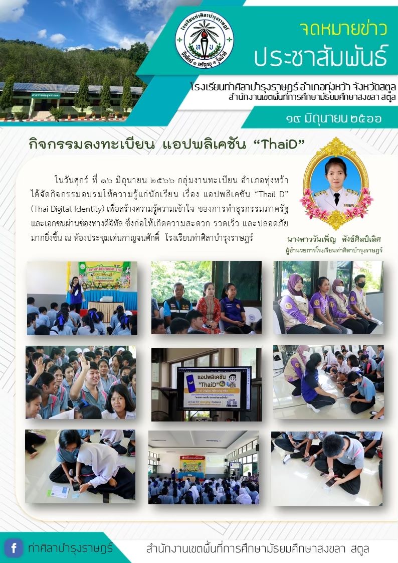 วันที่ 16 มิถุนายน 2566 จัดอบรมการใช้แอพลิเชัน ThaiD ของกรมการปกครอง อำเภอทุ่งหว้า