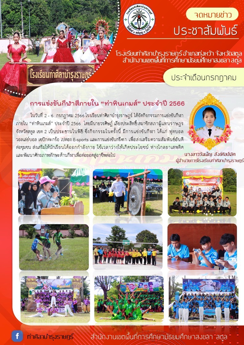 วันที่ 2-6 กรกฎาคม 2566 จัดการแข่งขันกีฬาภายในโรงเรียน ท่าหินเกมส์ ประจำปีการศึกษา 2566