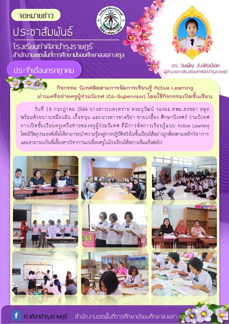 วันที่ 17 กรกฎาคม 2566 การนิเทศติดตามการจัดการเรียนรู้ active learning ผ่านเครื่อข่ายครูผู้ร่วมนิเทศ (ครูCS)